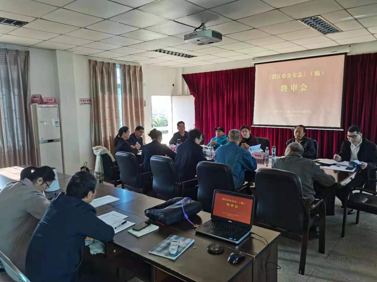 市公安局政治处主任吴国辉、市警察协会会长李传锐、副会长谢文志等人员参加评审会。吴国辉介绍《湛江市公安志》志稿编纂情况,评审小组成员分别对志稿进行点评,对《湛江市公安志》志稿给予充分肯定,也就志稿中存在问题提出具体的建议和修改意见。会议进行实名投票表决,同意《湛江市公安志》通过终审,同时,要求对志稿作进一步修改完善后,送市政府地方志办验收。