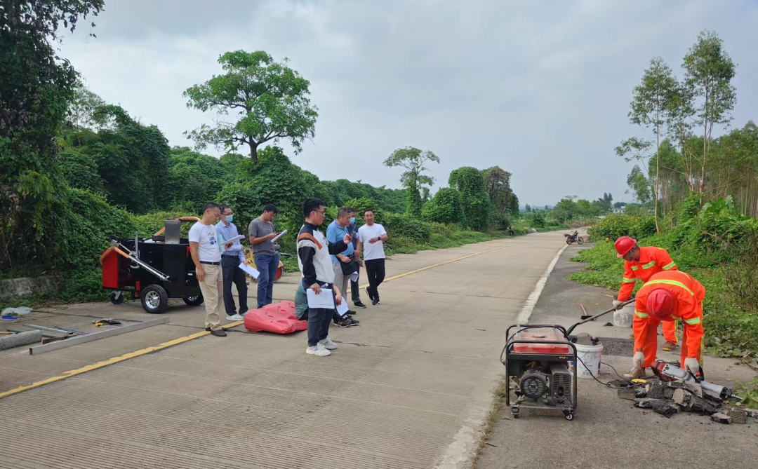 集中培训后,次日,裁判组人员统一坐车前往比赛现场进行技能实操观摩,观摩内容涵盖沥青路面坑槽修补和水泥混凝土路面灌缝两项,共计90分钟。裁判组人员仔细观察养护人员取料、切割、开凿、灌缝等的操作过程,结合“竞赛标准”实施流程查漏补缺,并就现场可能存在各类状况进行深入交流,达到预期效果。