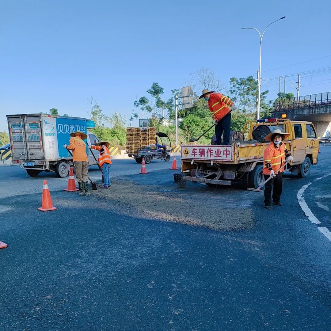 此次作业,麻章养护所共出动车辆20台次、人员105人次、机械20部次,共修补路面120平方米。