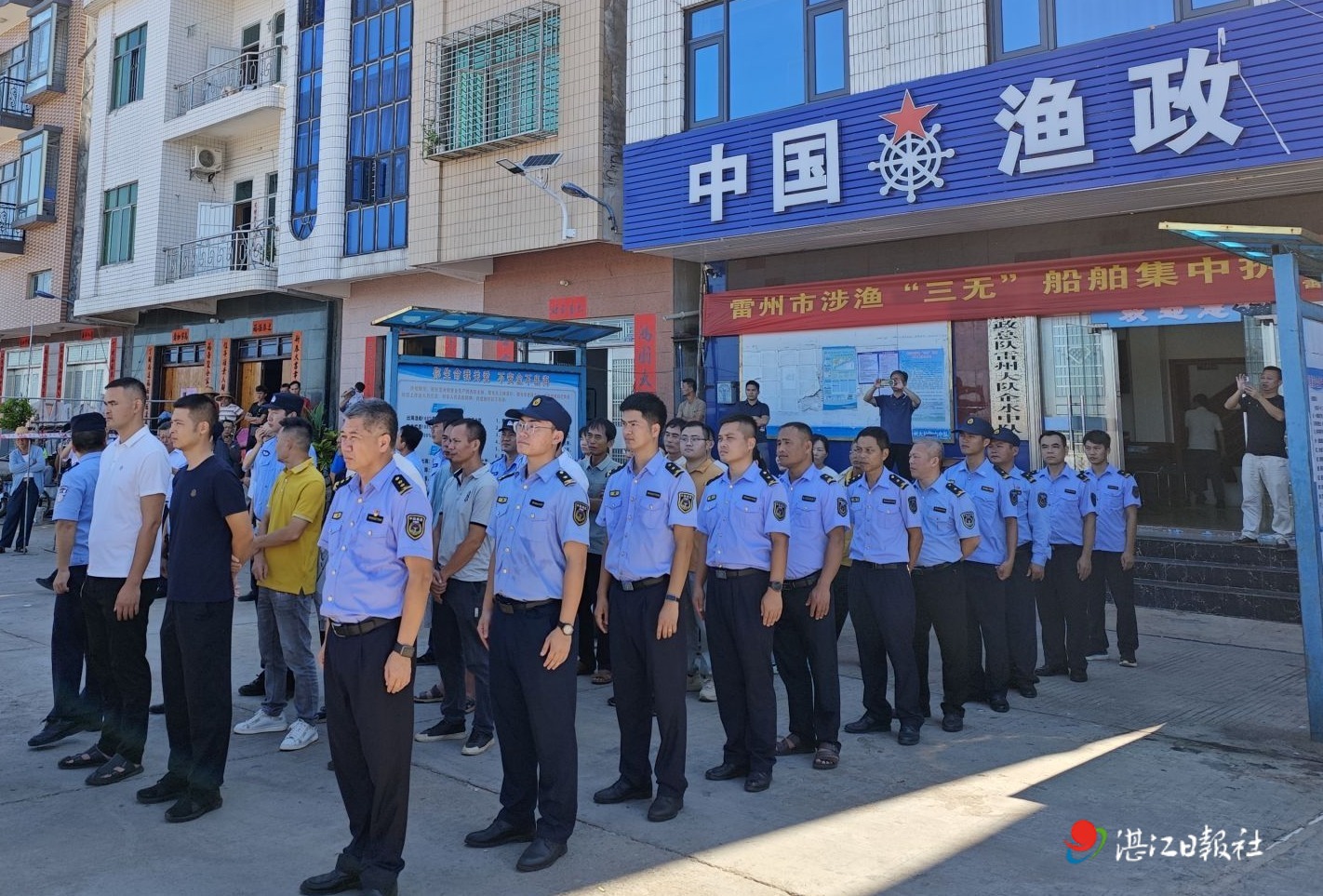 当日上午,雷州市人民政府统一部署,组织该市农业农村、海洋综合执法、沿海镇政府、公安、海警、村委会等部门及当地群众60多人,在企水渔港码头举行“雷州市涉渔”三无”船舶集中拆解现场会”,省农业农村厅,省海洋综合执法总队及其直属三支队,湛江市海洋与渔业局,湛江市海洋综合执法支队等有关领导出席现场监督指导,现场集中销毁18艘涉渔“三无”船舶。