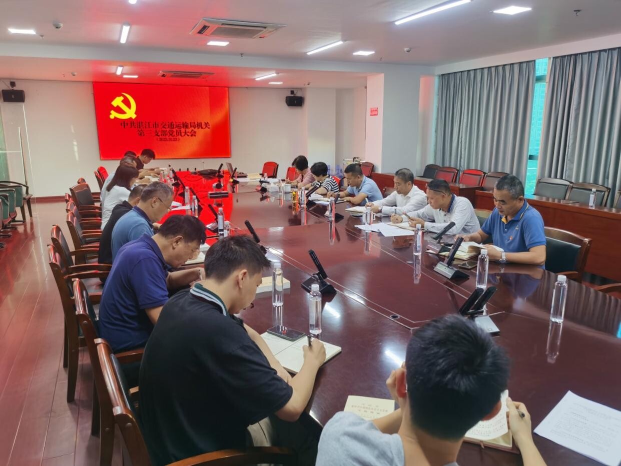 根据湛江市交通运输局党组开展学习贯彻习近平新时代中国特色社会主义思想主题教育工作安排,10月23日,局机关第三党支部召开全体党员大会。三支部党员、预备党员及入党积极分子参加党课学习。