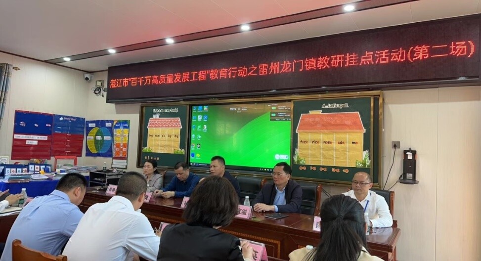 2024年3月5日,广东省“百县千镇万村高质量发展工程”教育行动之龙门镇教研挂点活动(第二场)在龙门镇中心小学顺利召开。为贯彻落实《广东省“百县千镇万村高质量发展工程”教育行动方案(2023—2027年)》《关于强化挂点联系助力“百县千镇万村高质量发展工程”教育行动有关工作的通知》和《广东省基础教育教研基地项目建设实施办法(试行)》的通知》精神,扎实开展广东省基础教育学科教研基地建设,推动我市基础教育高质量发展,2024年3月5日,湛江市教育局教学研究室在雷州市龙门镇开展广东省“百县千镇万村高质量发展工程”教育行动之龙门镇教研挂点活动(第二场),并同期举行广东省基础教育学科教研基地--湛江小学英语、湛江小学音乐及湛江初中地理联合送教下乡活动。