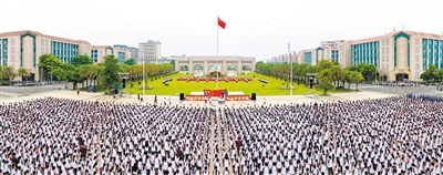 天安门国旗班首任班长与湛江科技学院学子同升国旗