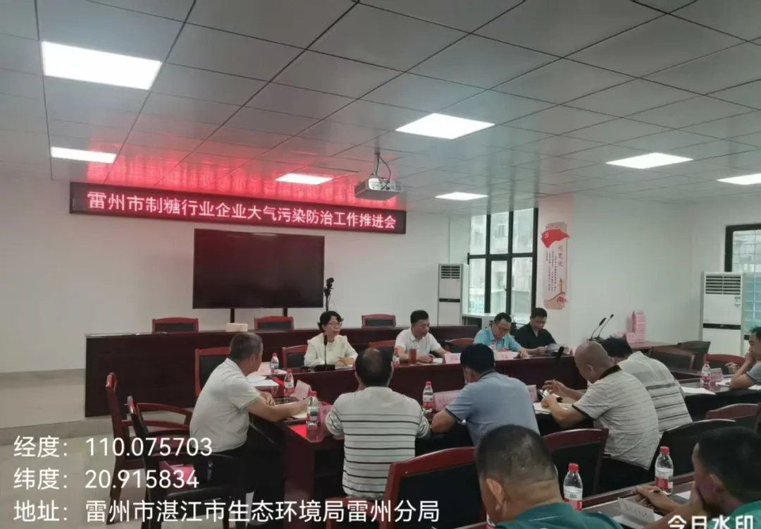 会议通报了雷州市2025年空气质量的严峻形势以及制糖行业企业大气污染防治设施的存在问题,听取了各制糖企业的除尘、脱硝及在线监测设备的升级改造进展情况、存在问题及下步计划。雷州分局分管领导和业务股室分别作了具体要求和指导。雷州分局局长林颂作了总结发言,要求制糖企业要落实主体责任,年底榨季前要完成各项整改工作确保达标排放。
