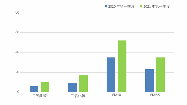 与上年同期相比,除CO浓度值下降外,其他五项污染物浓度均有所上升,通过空气污染指数分析显示,第一季度影响城市空气质量的主要污染物是PM2.5和臭氧。