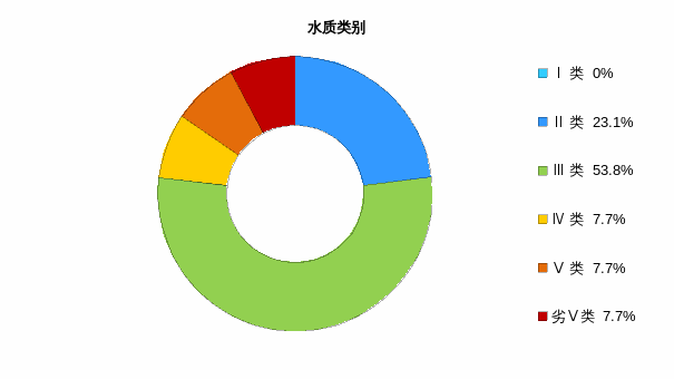 2021年第一季度湛江市8条主要江河的13个常规监测断面中,Ⅱ类水质断面3个,占总断面数23.1%;Ⅲ类水质断面7个,占总断面数53.8%;Ⅳ类水质断面1个,占总断面数的7.7%;Ⅴ类水质断面1个,占总断面数的7.7%;劣Ⅴ类水质断面1个,占总断面数的7.7%。