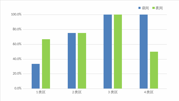 2021年第一季度全市15个功能区声环境监测达标率分别为:1类区昼间为33.3%,夜间为66.7%;2类区昼间为75.0%,夜间为75.0%;3类区昼间为100%,夜间为100%;4类区昼间为100%,夜间为50.0%。
