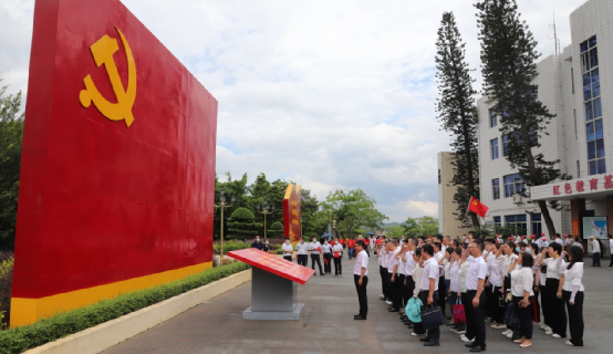随后,一行人前往雷州青年运河红色教育基地。陈典聪带领全体党员干部重温入党誓词,并参观建库开河纪念馆及建库开河专题片,重温雷州半岛人民“敢教日月换新天”的担当精神与革命豪情,详细了解湛江人民在各级党委的领导下,众志成城、不畏艰苦建库开河的光辉历史,追寻共产党人的初心和使命。一件件自制的劳动工具、一件件简陋的生活用品、一幅幅珍贵的历史图片资料把大家带回到了那段建库开河的峥嵘岁月。全体党员干部深深被老一辈运河人自力更生、艰苦奋斗、无私奉献的精神所震撼。
