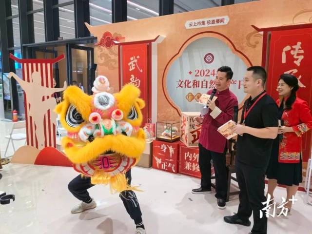 在直播时间段,湛江市文广旅体局副局长莫智铣作为非遗推荐官、“广东醒狮”项目县级代表性传承人李祖杰作为助演嘉宾通过直播带货、舞狮头表演,展示湛江传统工艺。