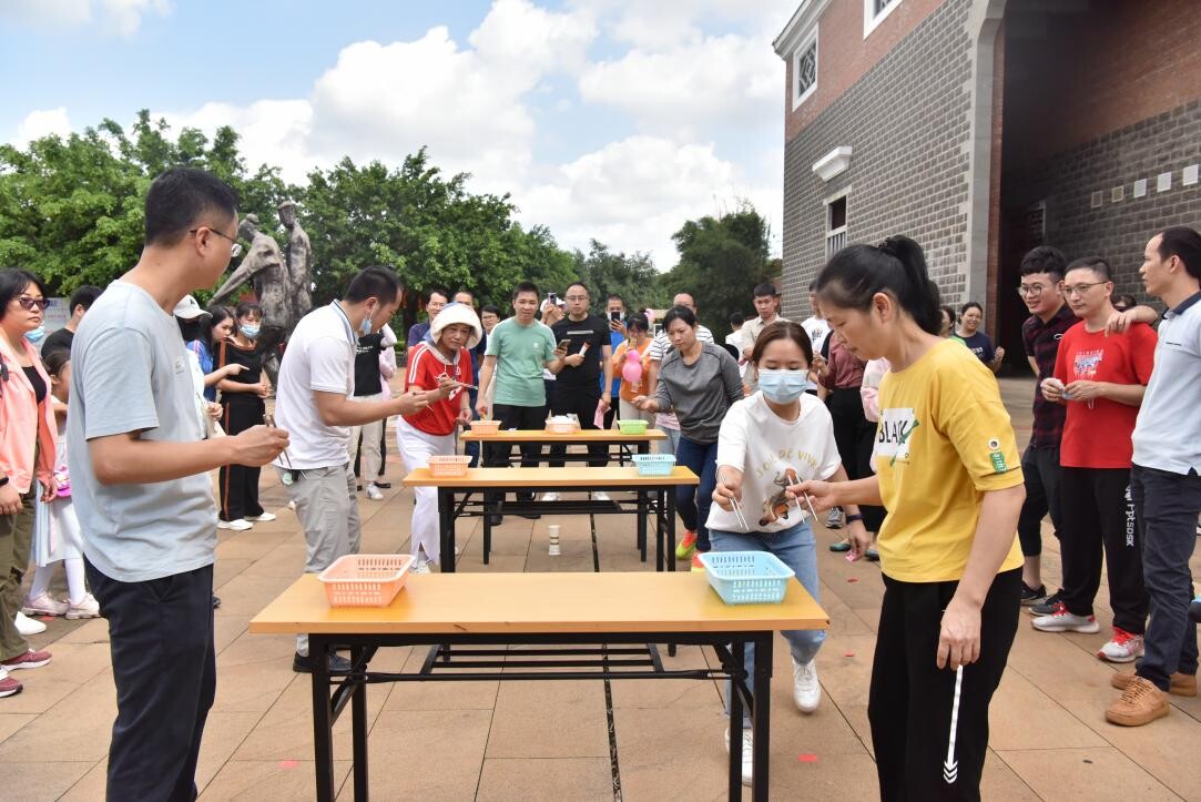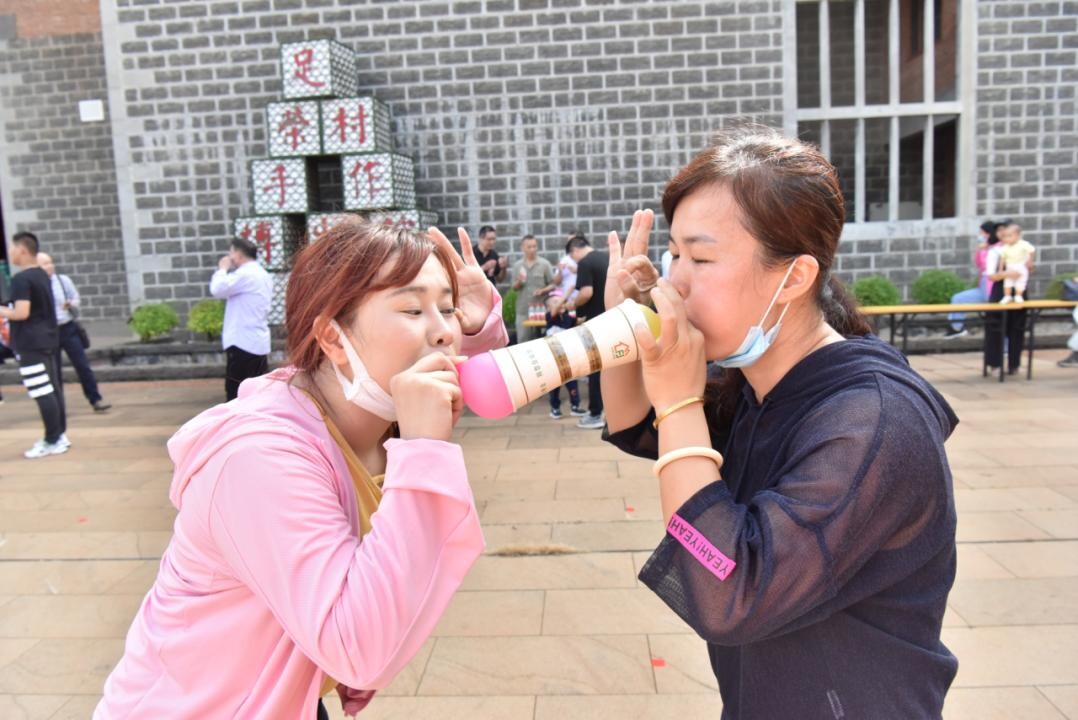 来到茂德公大观园,在工作人员的指引下,大家先参观了茂德公产品生产线。参观完毕,大家随机抽签分组,分成8支队伍分别进行双腿夹纸片、气球搬运工、巧夹玻璃球等趣味性活动。在大观园门前,各项活动有条不紊进行,一时间,宽阔场地充满主持人的口令声、工作人员的口哨声以及干部职工们的嬉笑声、加油鼓劲声,热闹十足,劲头十足。