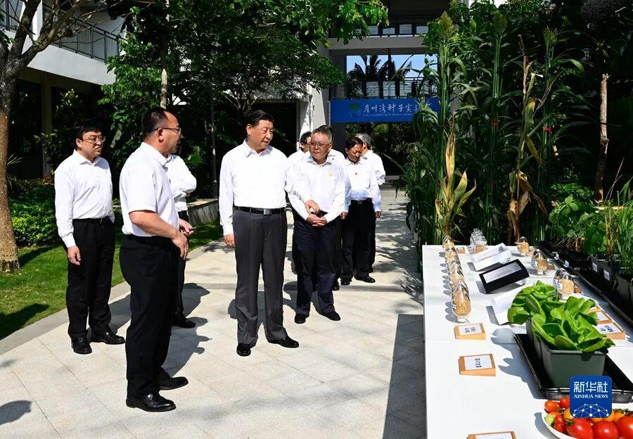 10日下午,习近平首先来到位于三亚市崖州湾科技城的崖州湾种子实验室考察调研。习近平听取了科技城规划建设和实验室总体情况介绍,察看了实验室搭建平台支持种业创新成果展示,对海南省探索农业科技创新模式、支撑保障国家粮食安全的做法表示肯定。习近平先后走进大型仪器公共服务中心、精准分子设计育种中心,同科研人员深入交流。习近平指出,中国人的饭碗要牢牢端在自己手中,就必须把种子牢牢攥在自己手里。要围绕保障粮食安全和重要农产品供给集中攻关,实现种业科技自立自强、种源自主可控,用中国种子保障中国粮食安全。要继承和发扬老一辈农业科研工作者胸怀祖国、服务人民的优秀品质,拿出十年磨一剑的劲头,勇攀农业科技高峰。
