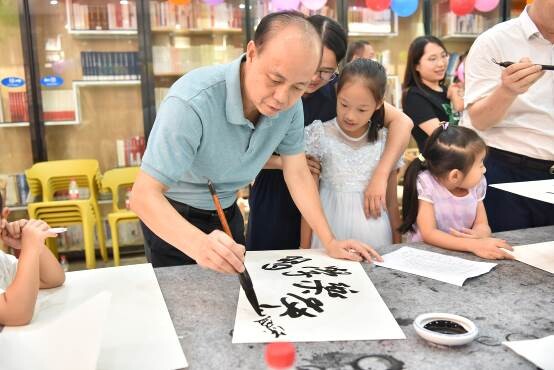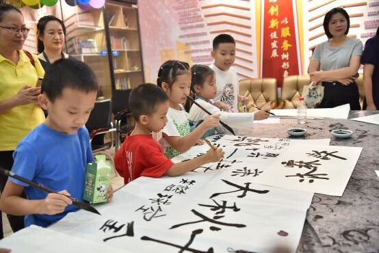 第二个故事,讲好中国传统优秀文化的故事。怎么样才能让中国传统优秀文化更鲜活?一直以来,市中心重视传统文化的学习和宣传,如在春节开展的“春联人人写,祝福人人送”活动。在这次活动中,为了让传统优秀文化在少年儿童中入心入脑,市中心以“讲好中国传统优秀文化”为抓手,特邀请了市中心党组书记、主任邓世亮同志,廉江办事处党支部书记、主任黎强同志为少年儿童上书法课程。邓世亮同志用通俗的语言向孩子们介绍了书法历史,使他们产生浓厚的兴趣。随后,两位同志从基本的握笔、运笔等姿势开始手把手教他们进行书法书写,现场每一位孩子都有模有样进行书法练习,大家全神贯注,一笔一画,劲头十足,活动现场书香味十足。在现场教学中,孩子们认识书法、欣赏书法,深切感受了中华文化艺术的博大精深。