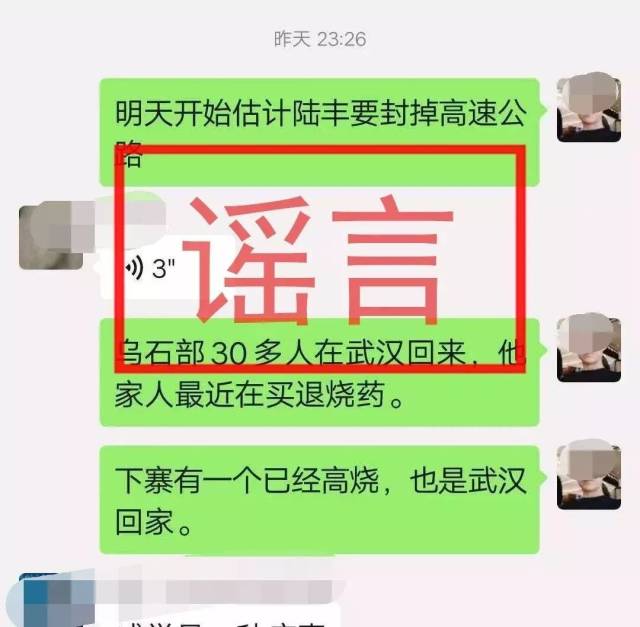 1月25日,陆丰网警部门在工作发现中,该市一微信网民在微信群聊天中发布“明天开始估计陆丰要封掉高速公路”“乌石部30多人在武汉回来,他家人最近在买退烧药”“下寨有一个已经高烧,也是武汉回家”等言论。