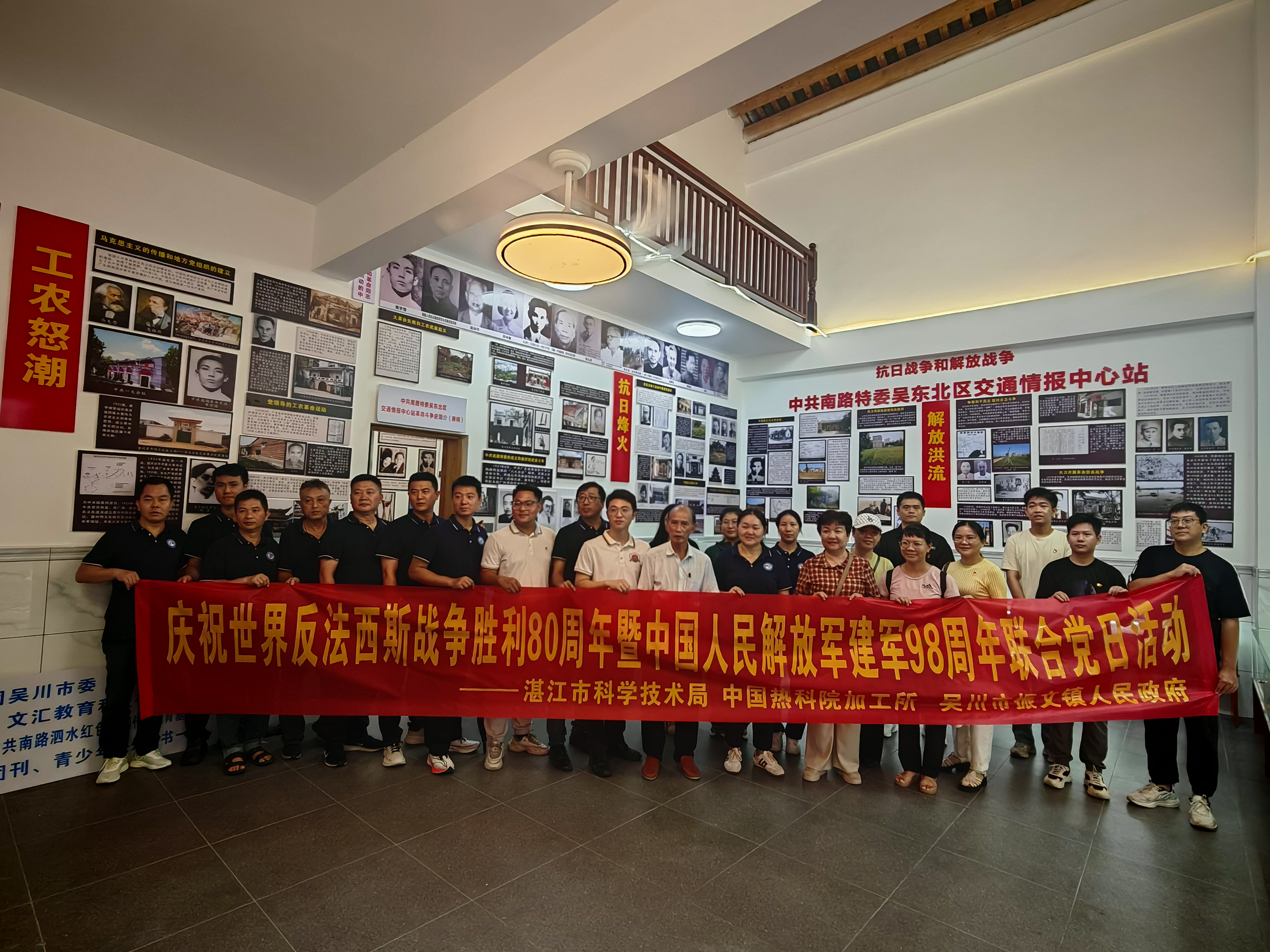 为隆重纪念中国人民抗日战争暨世界反法西斯战争胜利80周年以及中国人民解放军建军98周年。湛江市科技局、中国热科院加工所、吴川市振文镇人民政府组织党员干部职工共同前往吴川市振文镇泗岸村下坉兴村参观革命先辈陈伟祥的故居,了解其在抗日战争中作为中共南路特委吴东北区交通情报中心站的光荣历史。
