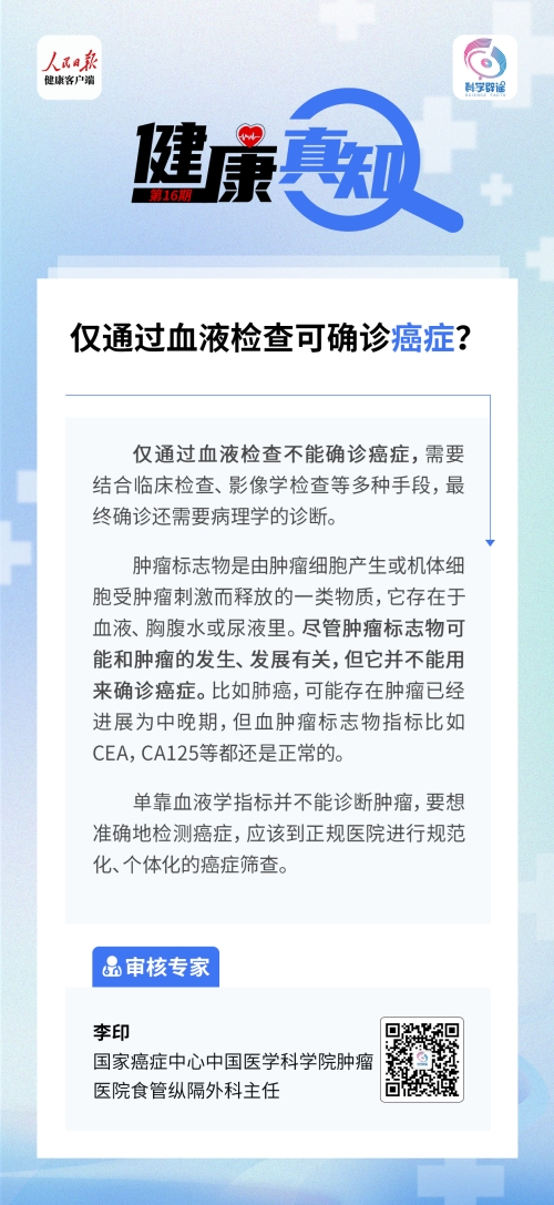 仅通过血液检查可确诊癌症?