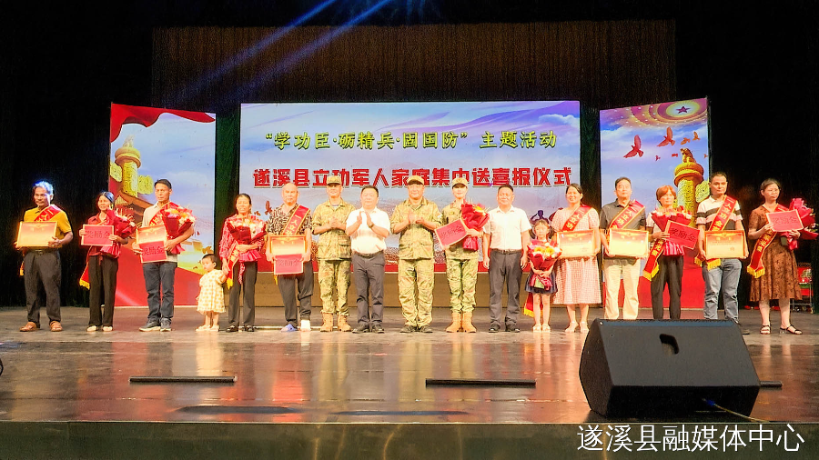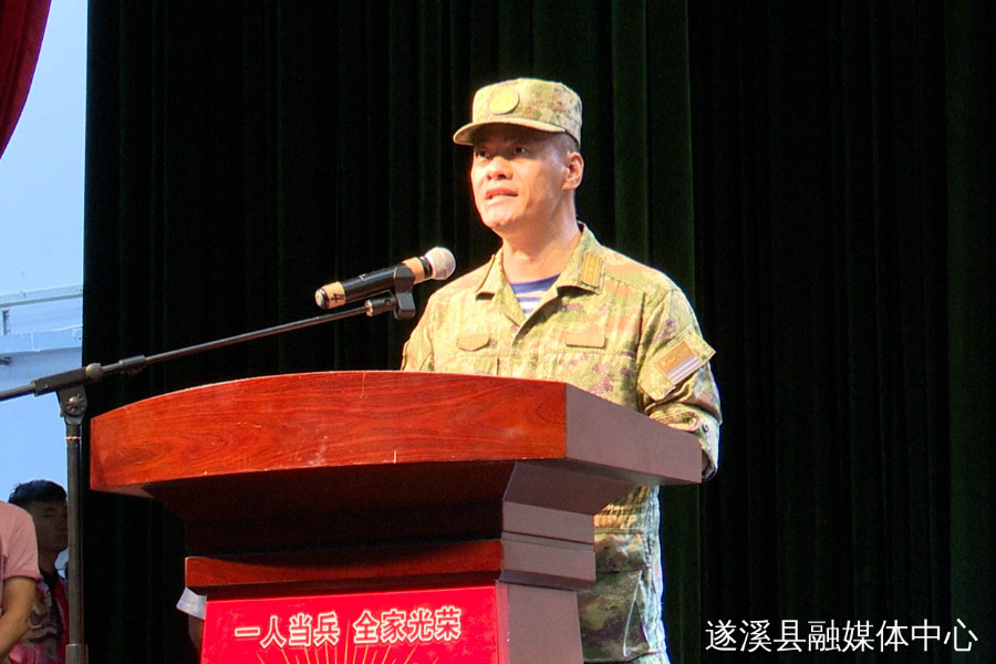 刘桂兴代表遂溪县委、县政府向荣获军功的军人家庭致以最热烈的祝贺,向长期默默支持国防和军队建设的广大军属表示衷心的感谢,向此刻正守卫祖国、奉献军营的全体现役官兵致以最崇高的敬意。希望广大军人牢记习近平总书记对青年“立志、修德、成才、担当”的殷切嘱托,以功臣模范为榜样,立足战位、精武强能,在强军征程中为家乡增光添彩、再立新功。