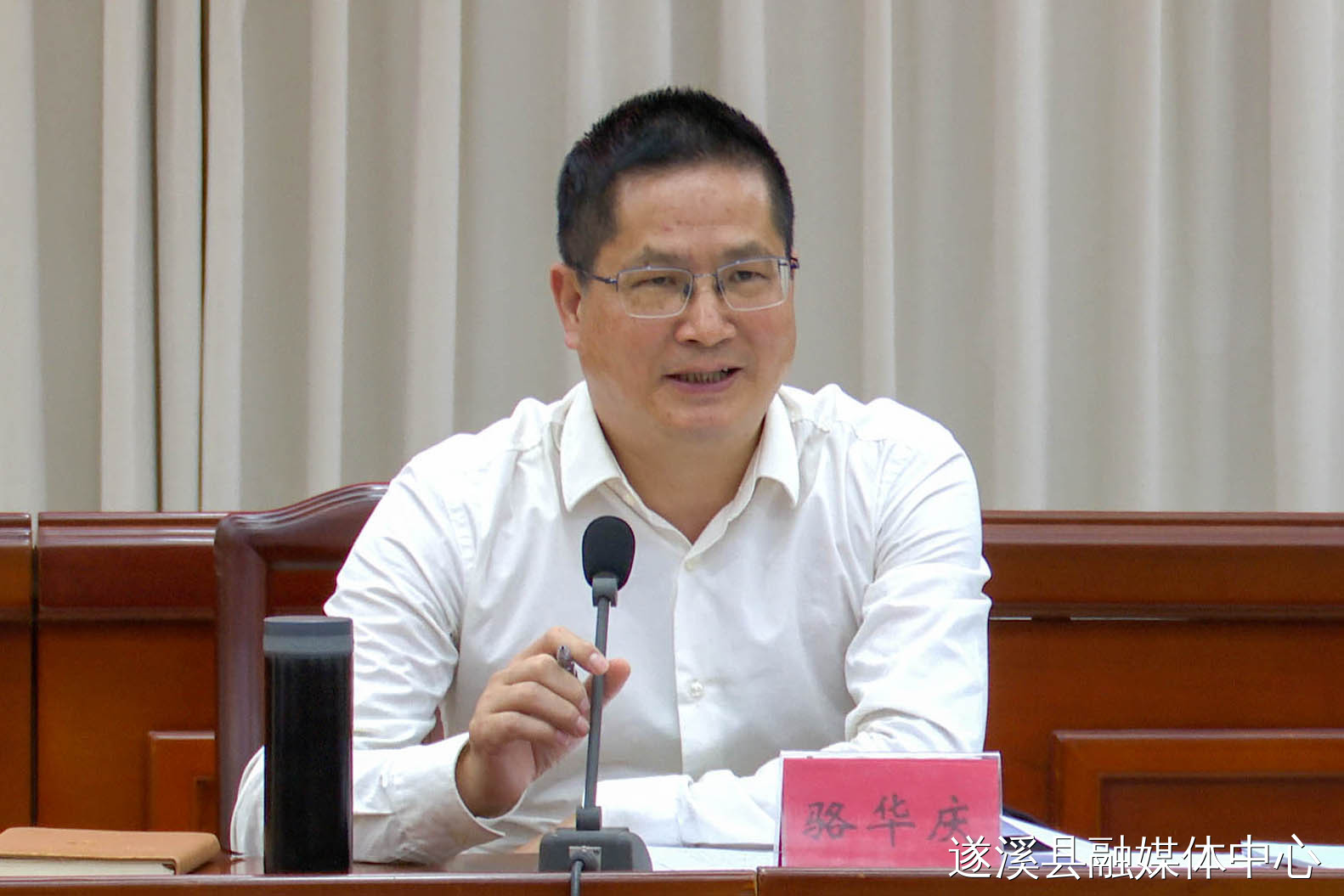 遂溪县委书记骆华庆主持会议并讲话,遂溪县人民政府县长张洋作工作部署。