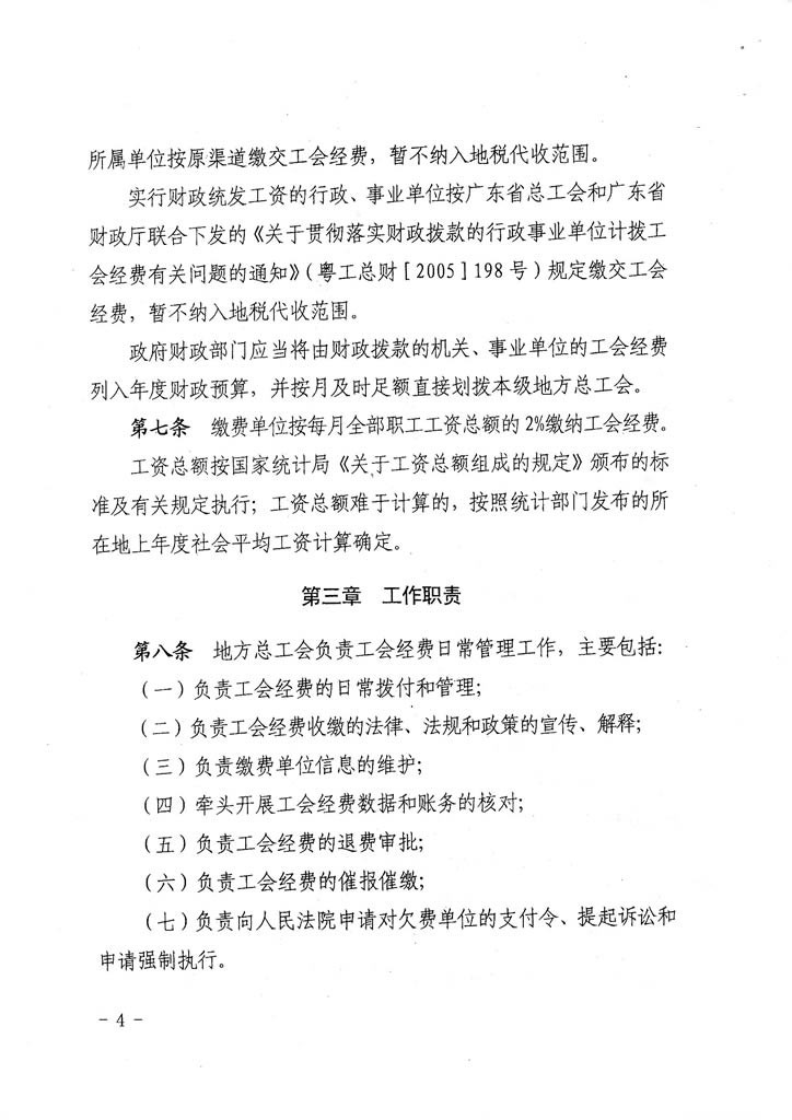 七、工会对单位工会经费收缴工作实行年审制度。年审时间为每年3至5月,地方总工会负责辖区内缴费单位的年审工作,年审内容主要包括:单位上年末用工人数和职工工资总额、经费回拨等情况。