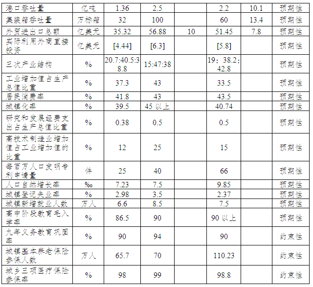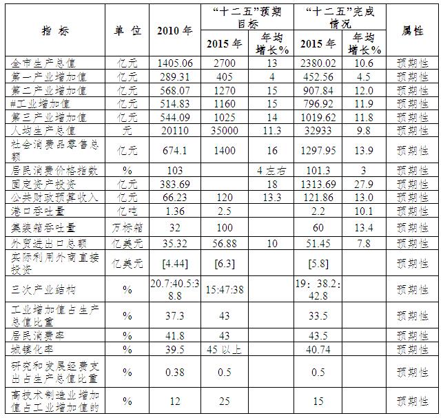 注:1、增加值绝对数按现行价计算,增长速度按可比价计算。2、“十二五“完成目标中2015年数值和年均增长为预计数。3、“[ ]”号的数为“十二五”时期累计数。