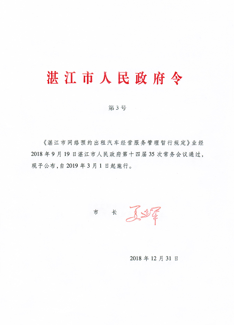 湛江市网络预约出租汽车经营服务管理暂行规定