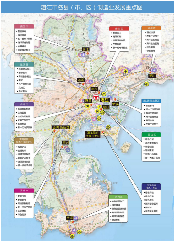 紧抓湛江发展智能汽车产业的重大机遇,重点发展智能汽车、先进材料、海洋生物医药、农副产品加工、高端装备制造、新一代电子信息等产业。