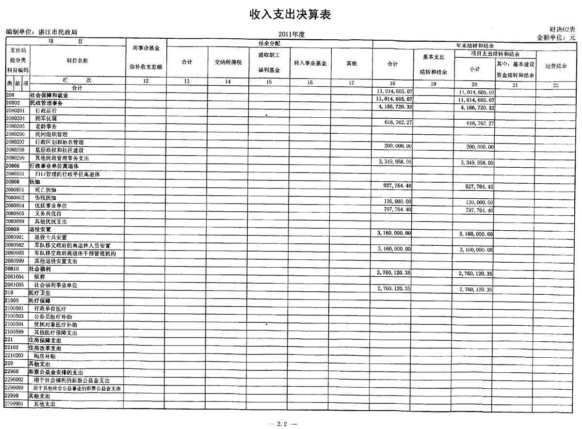 2011年财政收入支出决算表