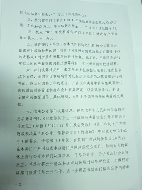 关于批复2011年度市级部门决算的通知