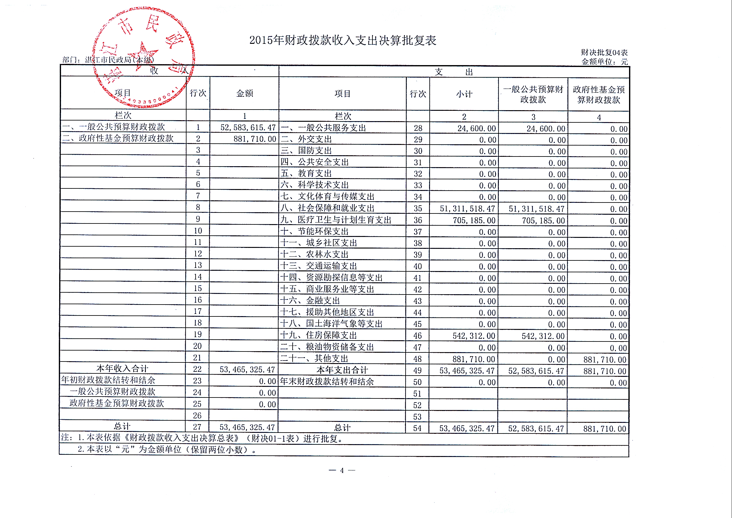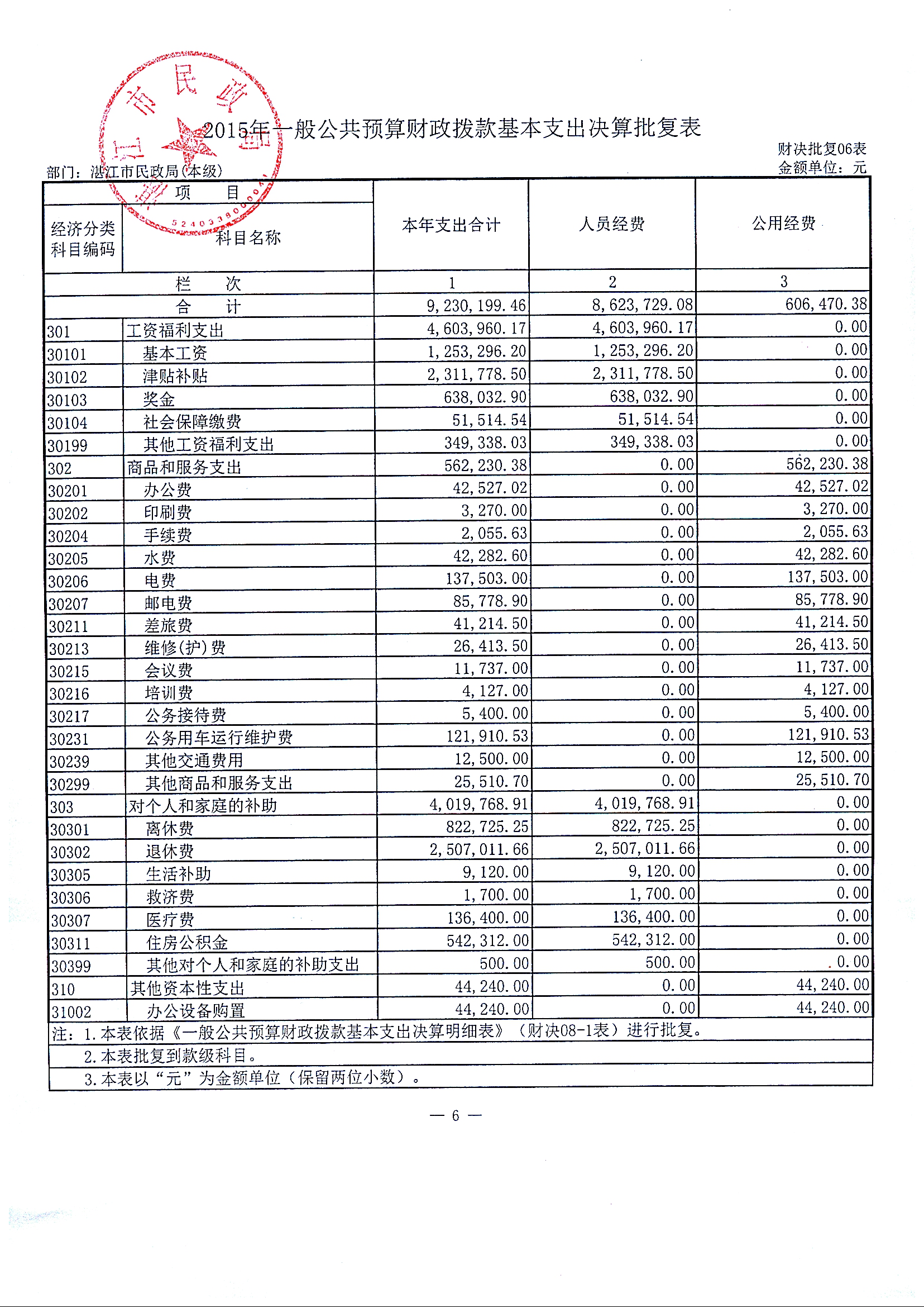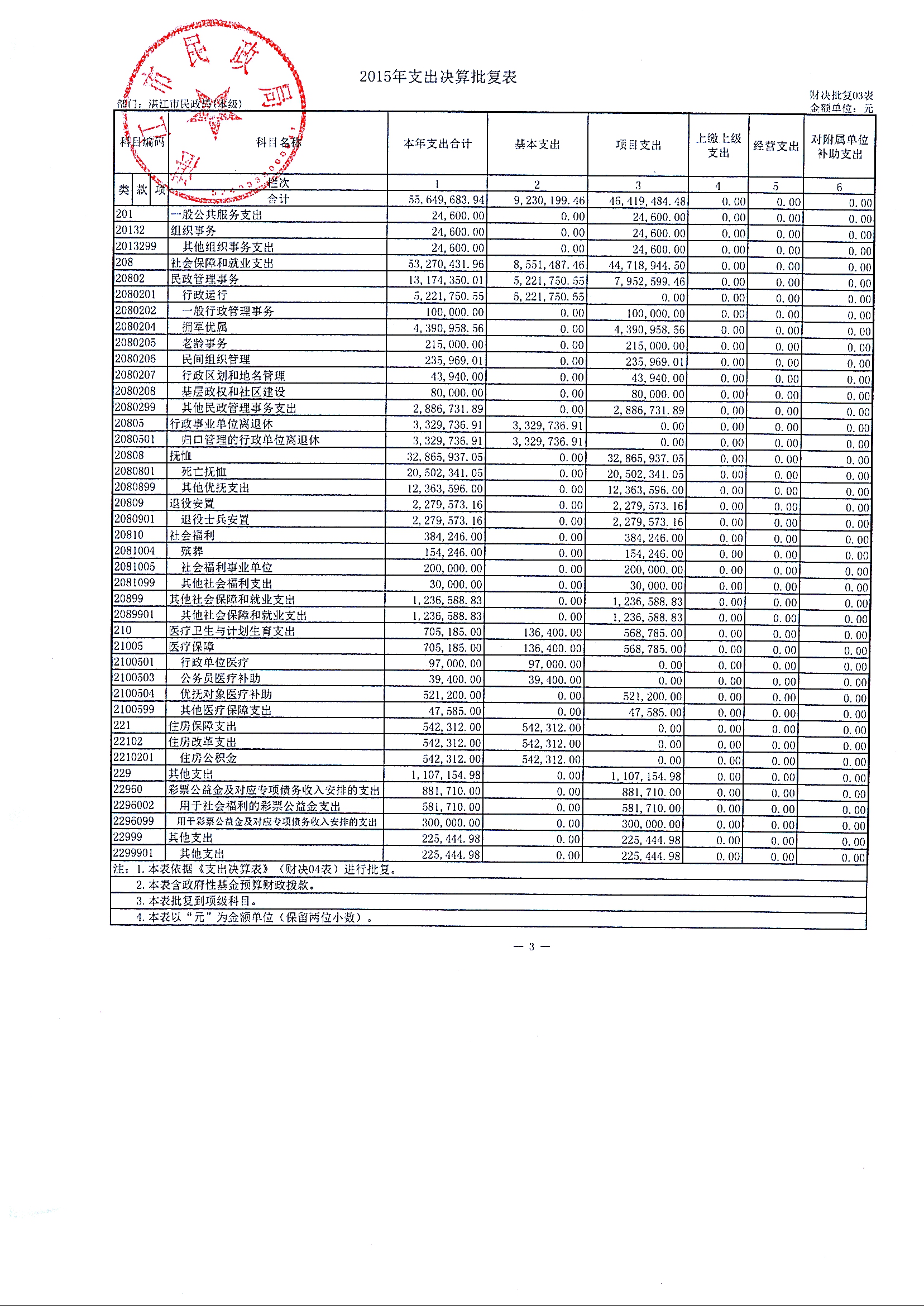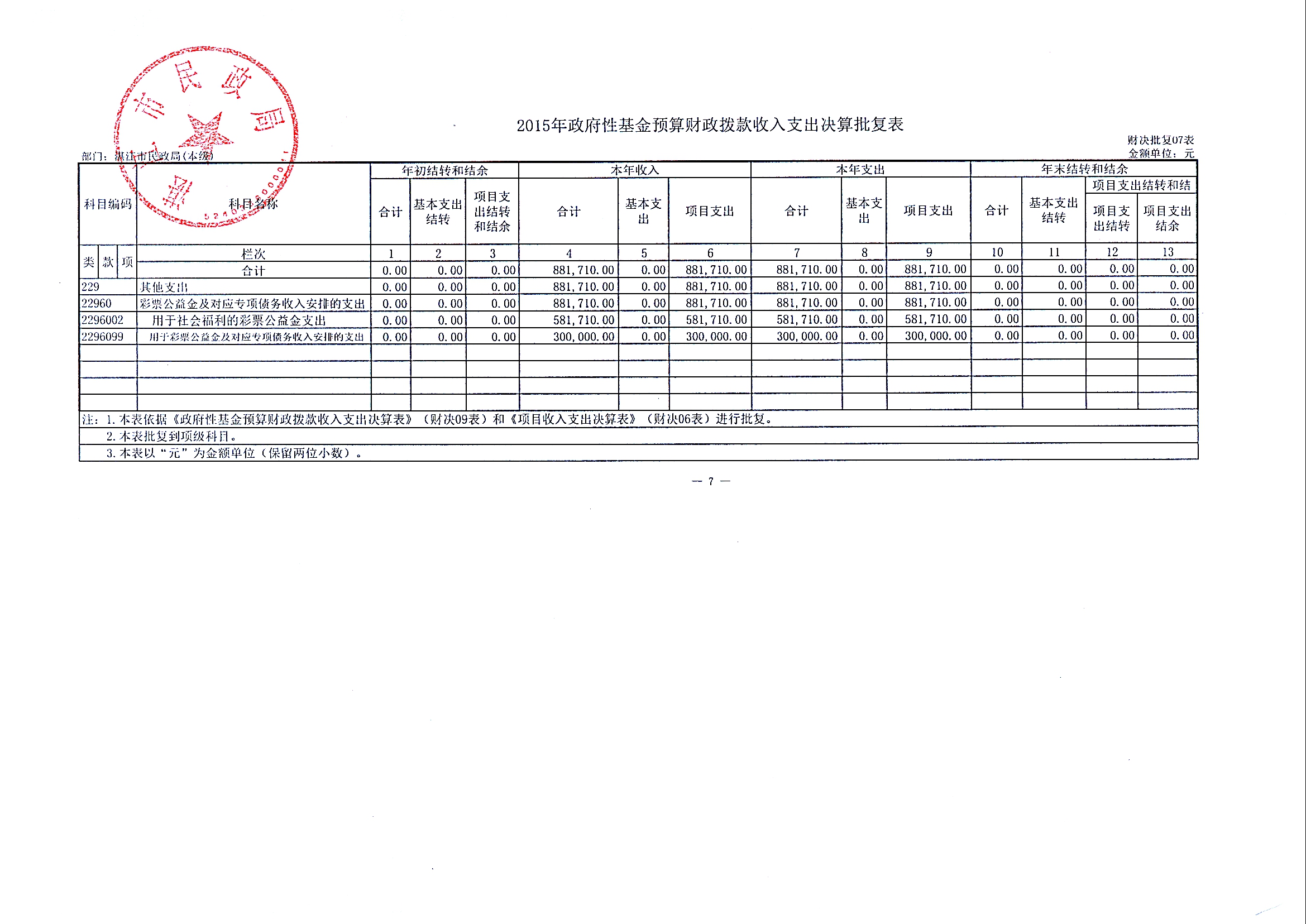 补充公开2015年部门决算情况说明及湛江市民政局(本级)2015年决算批复表