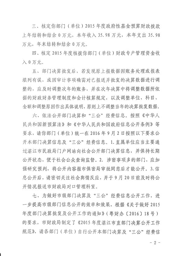 湛江市殡葬管理所2015年市级部门决算批复