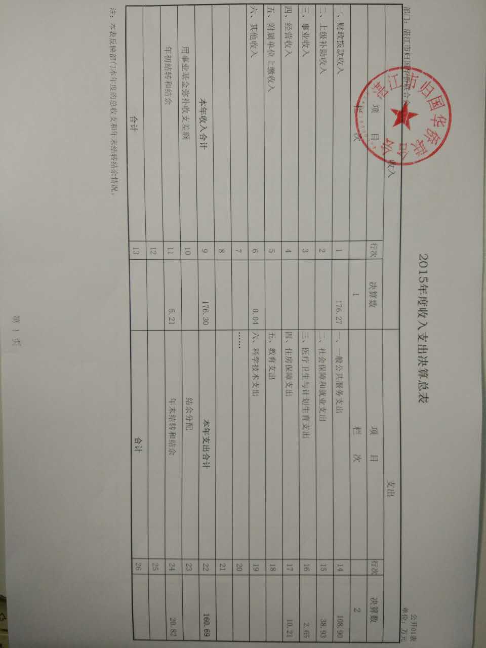 2015年度财政总拨入为1762661.8元,而2014年的财政总收入为1658435.76元,14年收入比13年增加104226.04元。
