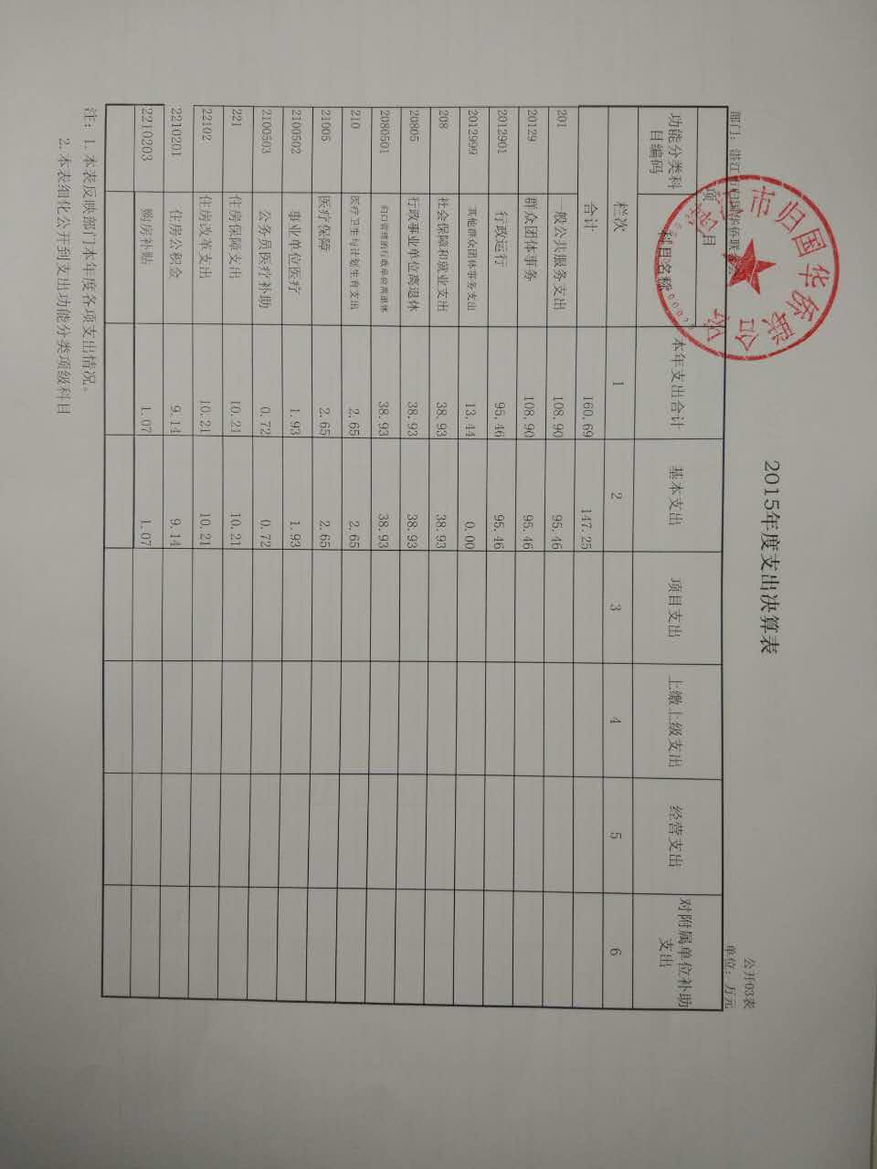 2015年市侨联财政经费支出总额1606926.04元,其中:行政运行经费954639.9元,占总支出的59.4%;其他群众团体事务支出132539.85元,占总支出的8.25%;行政单位离退休经费389267.4元,占总支出的24.23%;行政单位医疗经费19300元,占总支出的1.2%。公务员医疗补助7200元,占总支出的0.45%;住房公积金支出93258.89元,占总支出的5.8%;住房补贴支出10720元,占总支出0.67%。