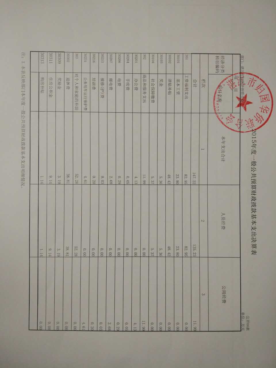 2015年度财政总支出数为1606926.04元,而2014年的财政总支出为1803654.52元,15年支出比14年减少196728.48元。