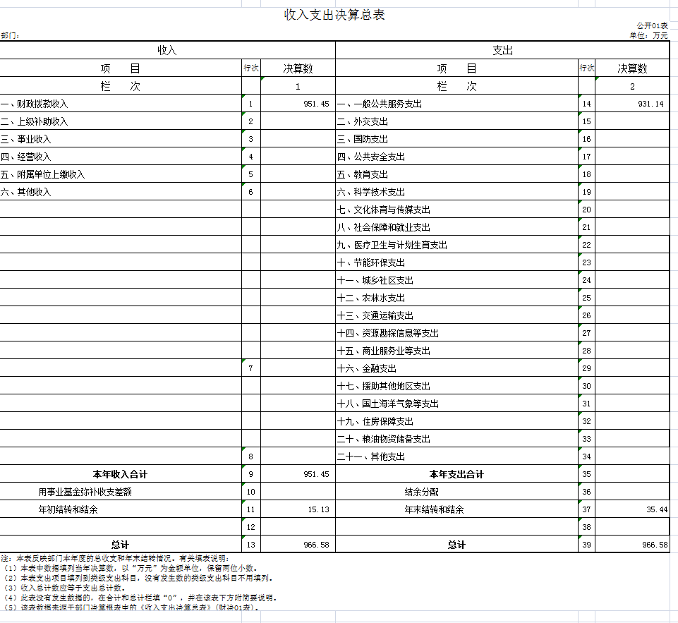一、收入支出决算总表