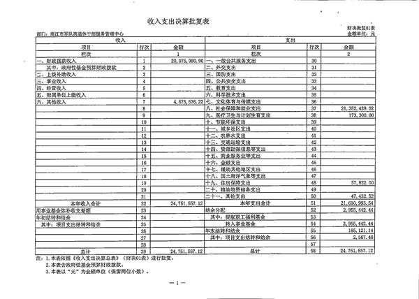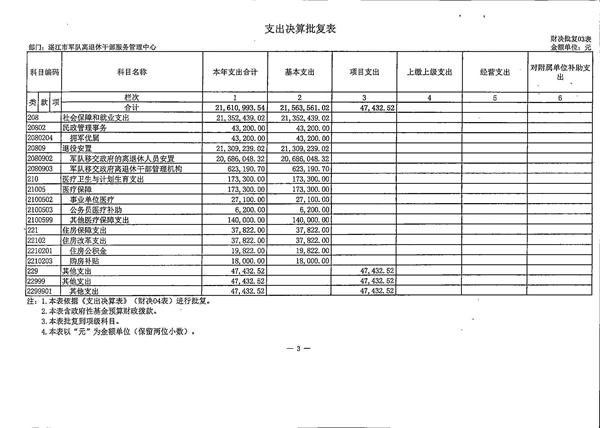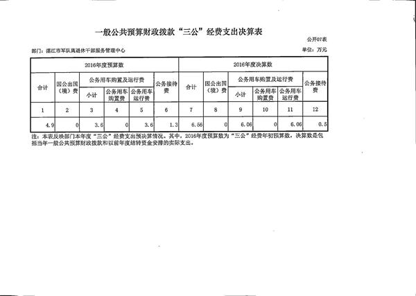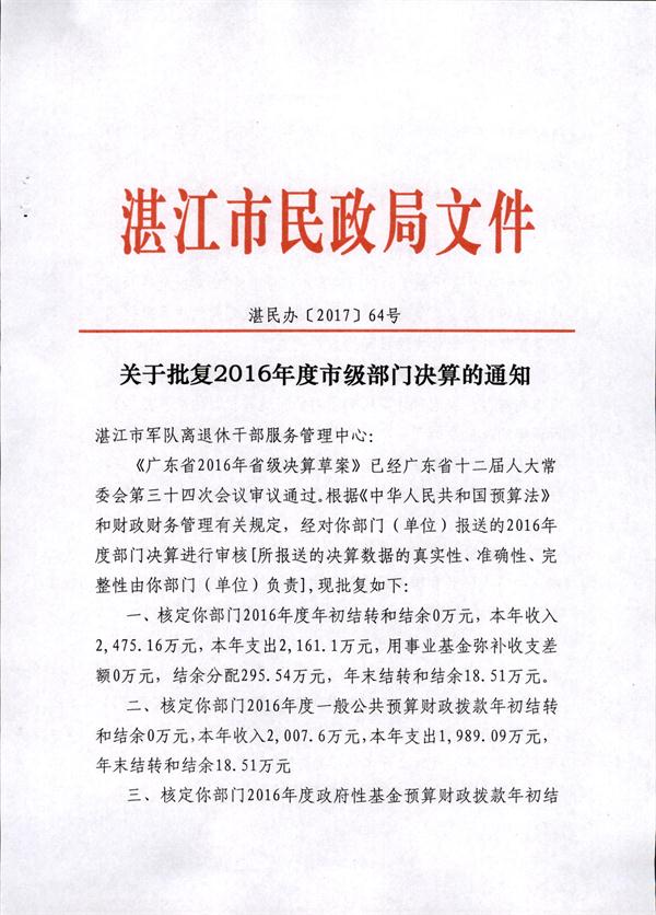 关于批复2016年度市级部门决算的通知(湛江市军队休离休退休干部服务管理中心)