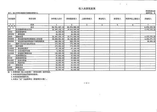 2016年总收入为2475.1万元,比2015年的2684万元减少209万元,其中:财政拨减少59万元、上级拨款少150万元。其主要原因为:1、财政拨款减少主要是军休经费及医疗经费等尚未拨款到位。2016年总支出为2161万元,比2015年的2454万元减少293万元,其中商品服务支出减少24万元;对个人和家庭补助减少276万元。其重要原因为:1、商品服务减少是因为今年减少老干部只能养老建设开支;2、对个人和家庭补助支出减少主要是2015年军休干部连续两次增加退休金,今年增长趋于正常(其中根据湛江市财政局湛财预函[2017]6号文要求,将2016年国库集中支付结余185121.14元采用权责发生制列2016年支出如下1、商品服务支出为0.2万元,2、对个人和家庭补助为18万元。)