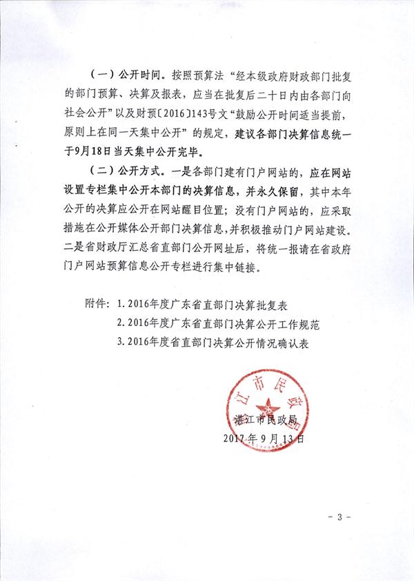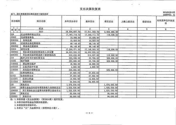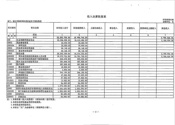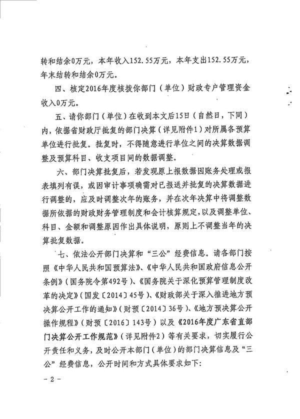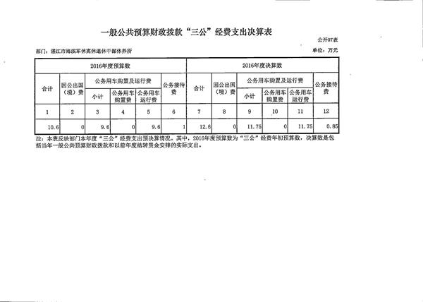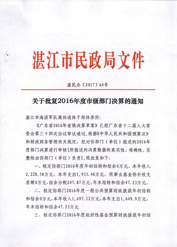 关于批复2016年度市级部门决算的通知(湛江市海滨军队离休退休干部休养所)