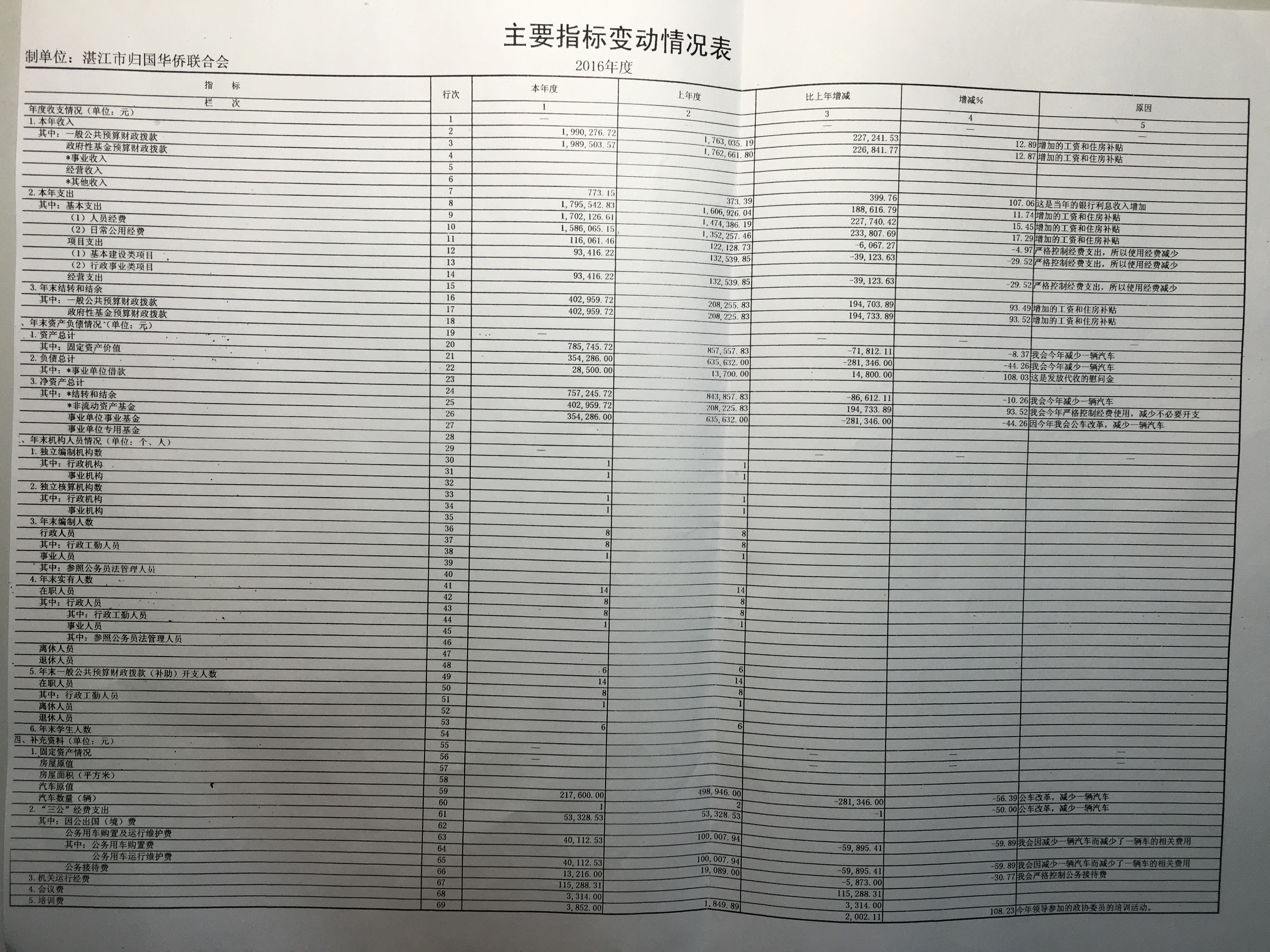 2016年度财政总支出数为179.47万元,而2015年的财政总支出为160.69万元,16年支出比15年增加18.78万元,增加11%,主要原因是因为我会今年开展了不少有关归侨侨眷的工作。