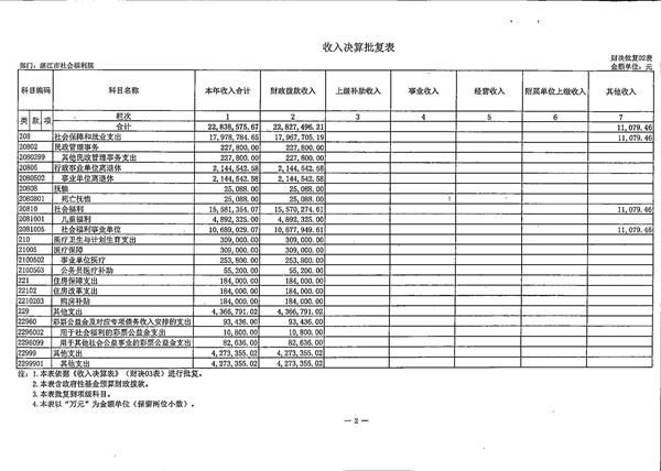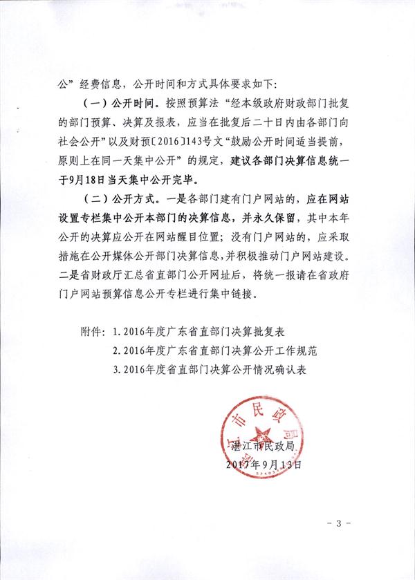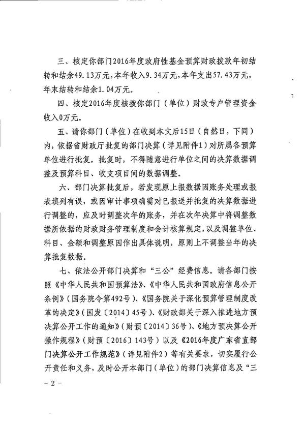 关于批复2016年年度市级部门决算的通知(湛江市社会福利院)