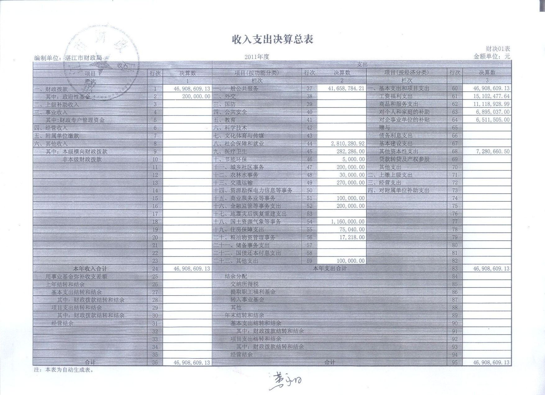 附件:2011年收支决算总表