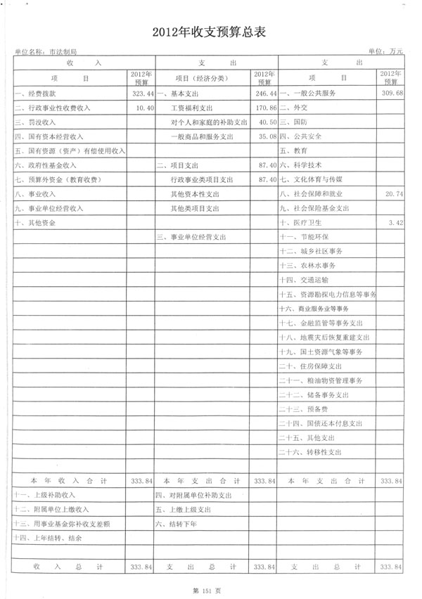 市法制局2012财政预算收支总表