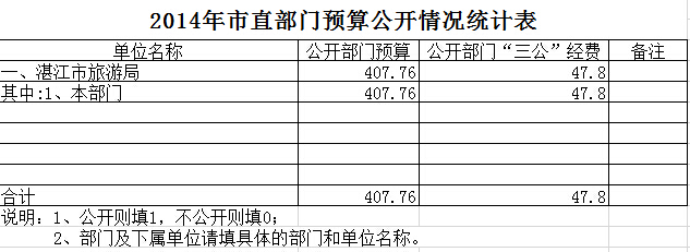 2014年湛江市旅游局市直部门预算公开情况统计表