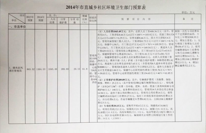 湖光岩风区景管理局2014年预算表