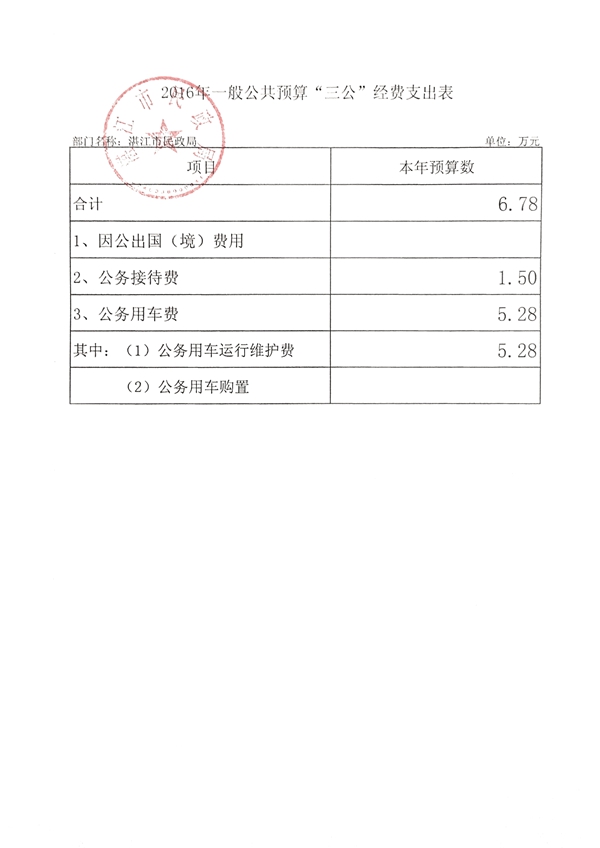 2016年一般公共预算“三公”经费支出表