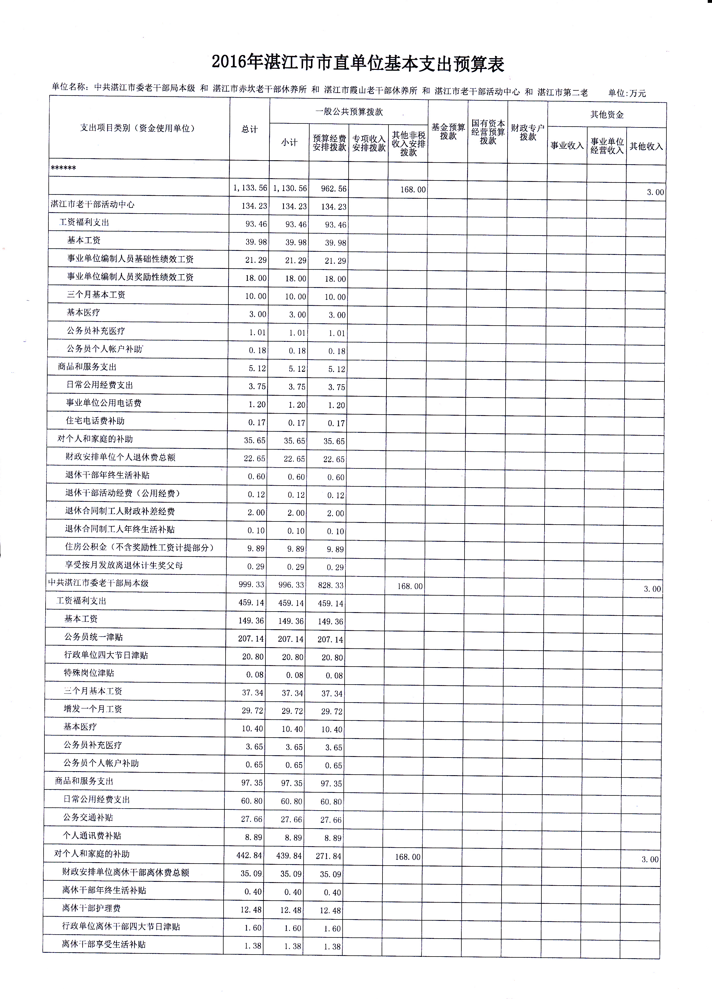 中共湛江市委老干部局2016年部门预算基本情况说明