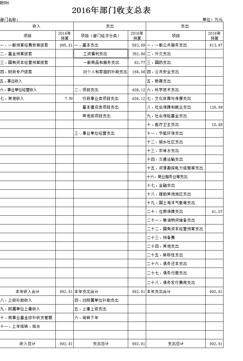 六、2016年部门收支总表