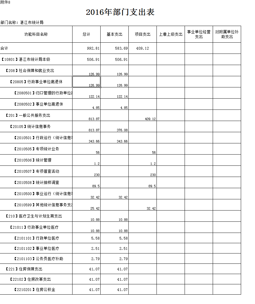 2016年湛江市统计局部门预算