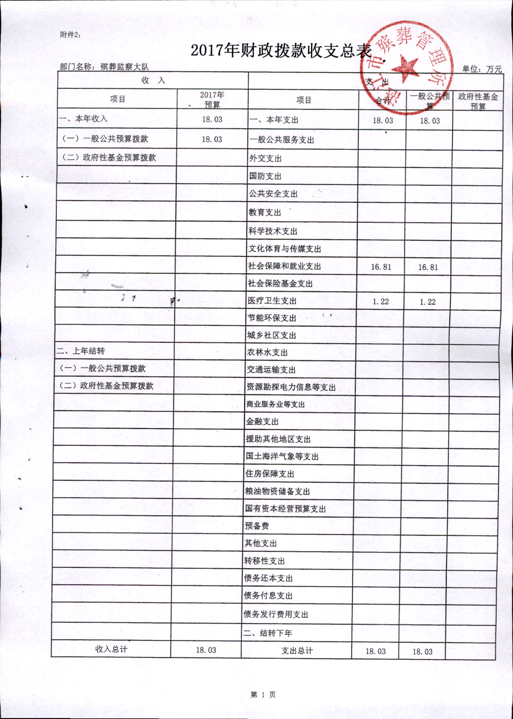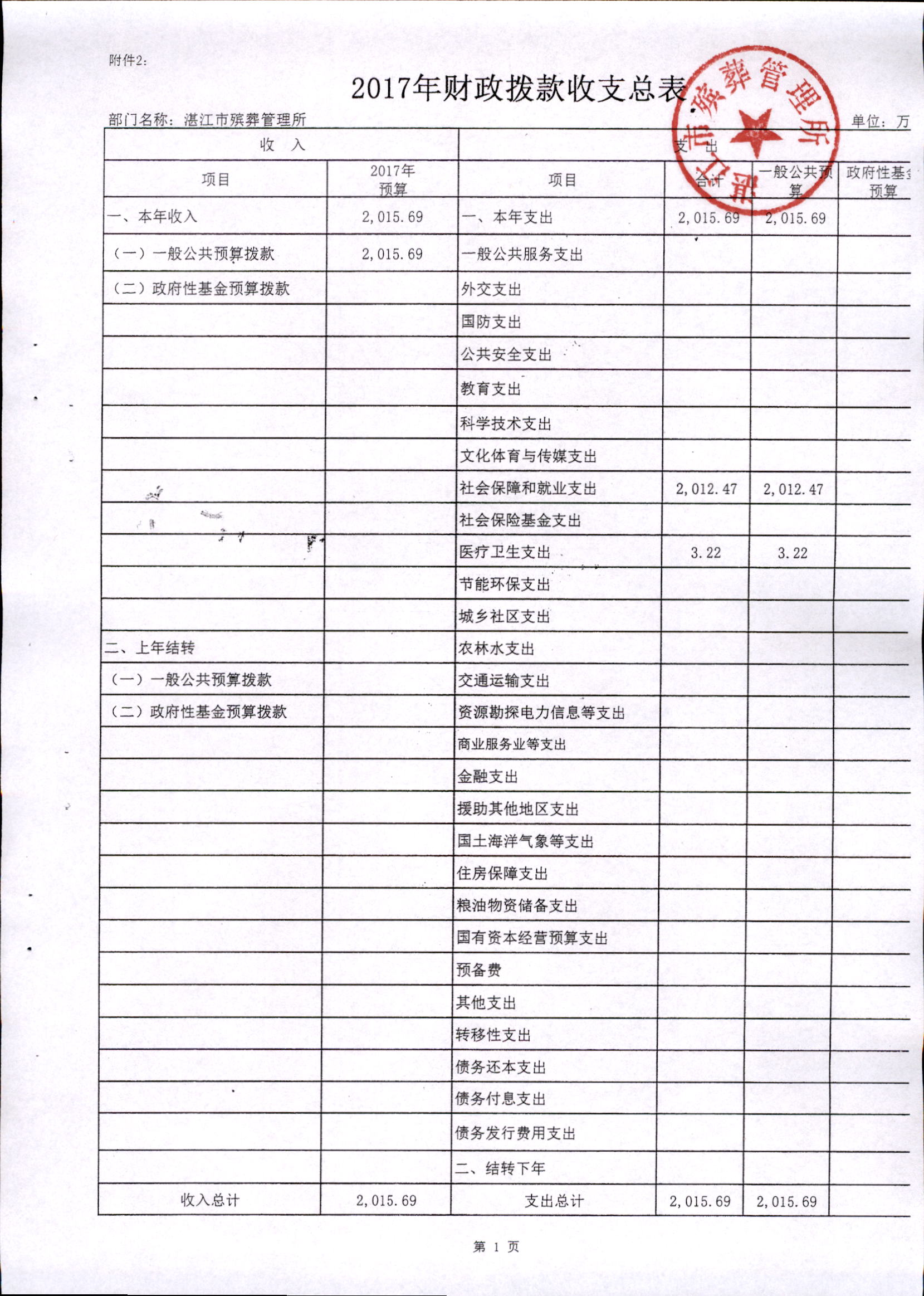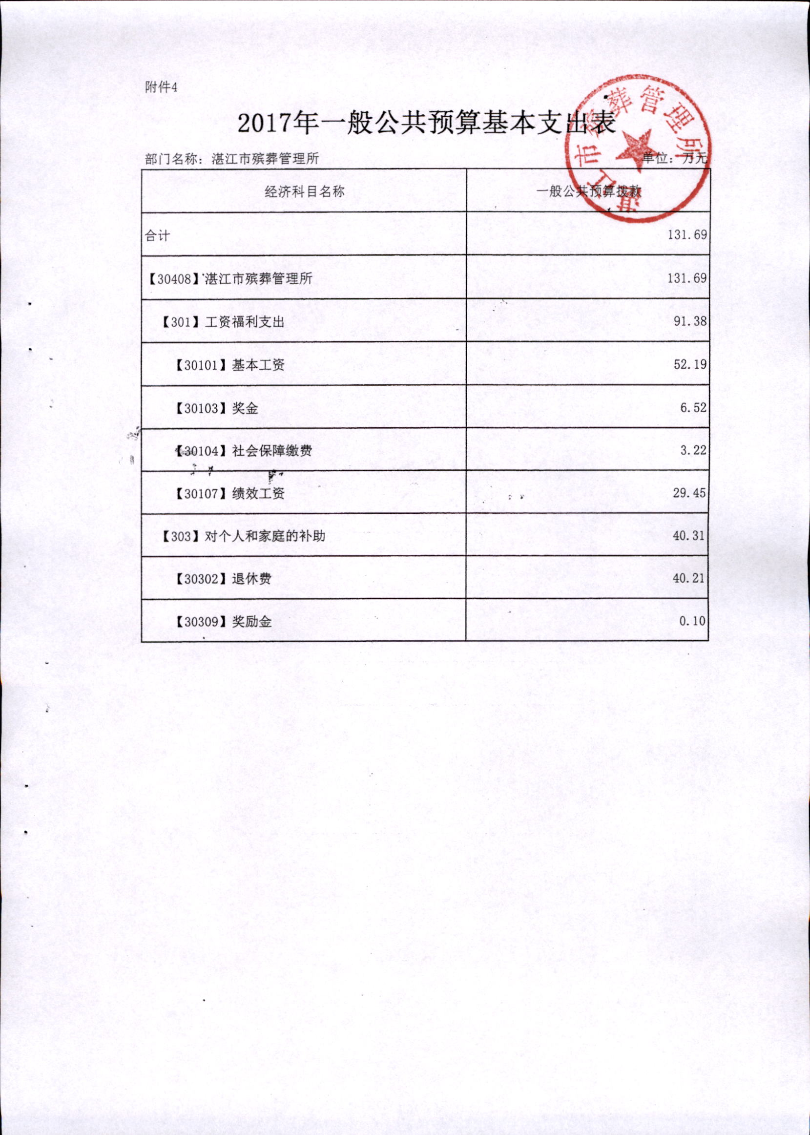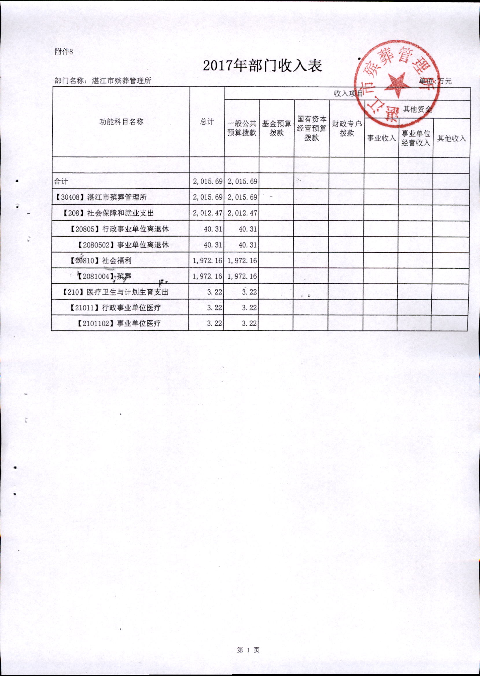 湛江市殡葬管理所2017年市本级部门预算批复