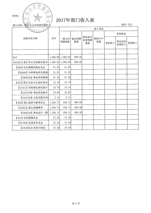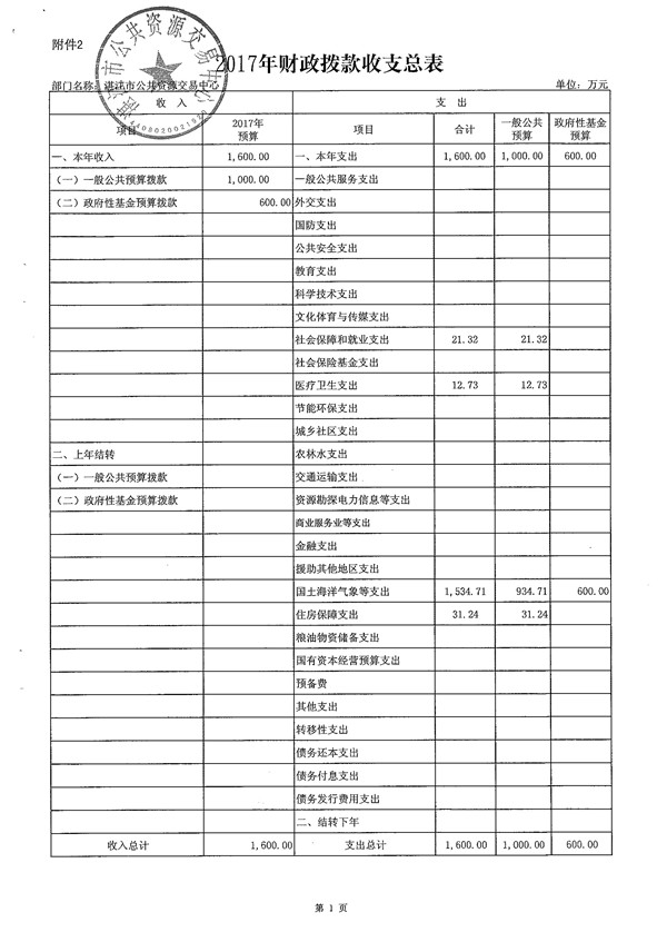 湛江市公共资源交易中心2017年预算基本情况