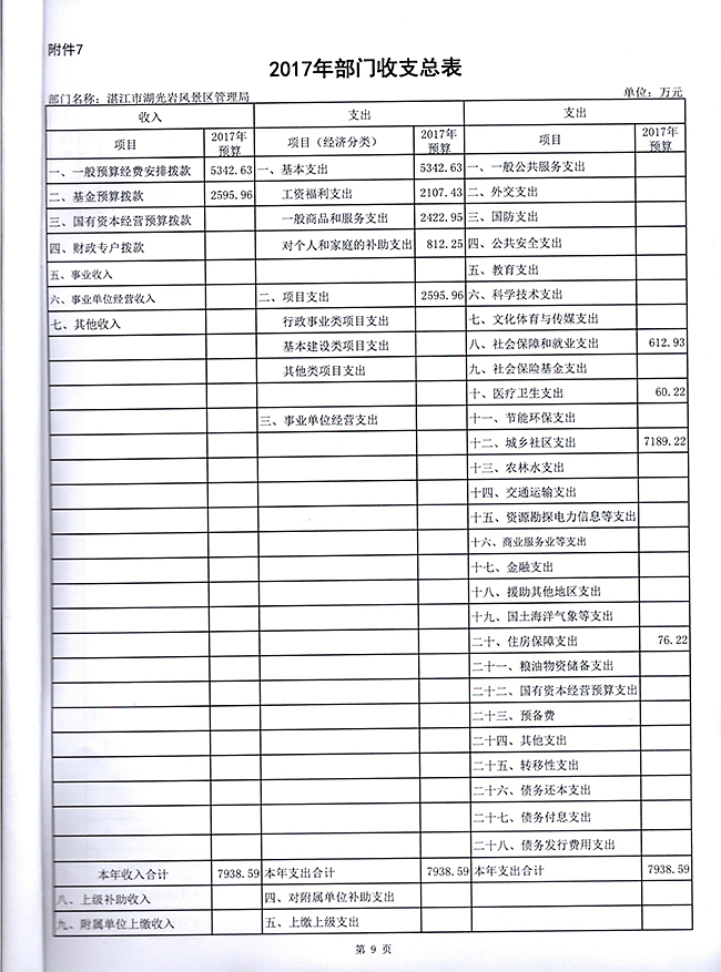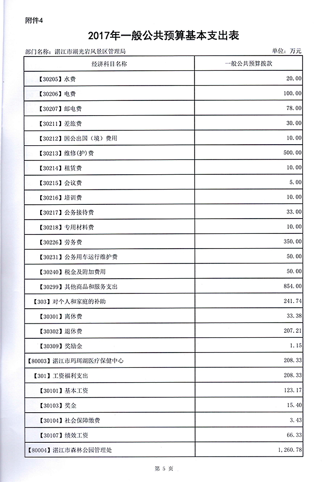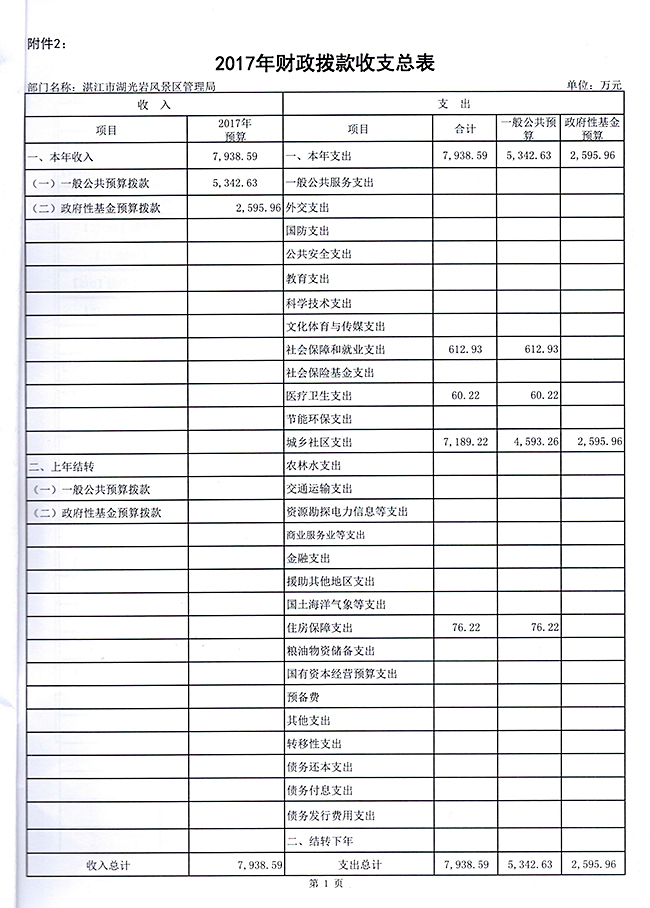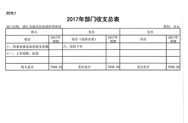2017年部门预算公开[湛江市湖光岩风景区管理局].doc