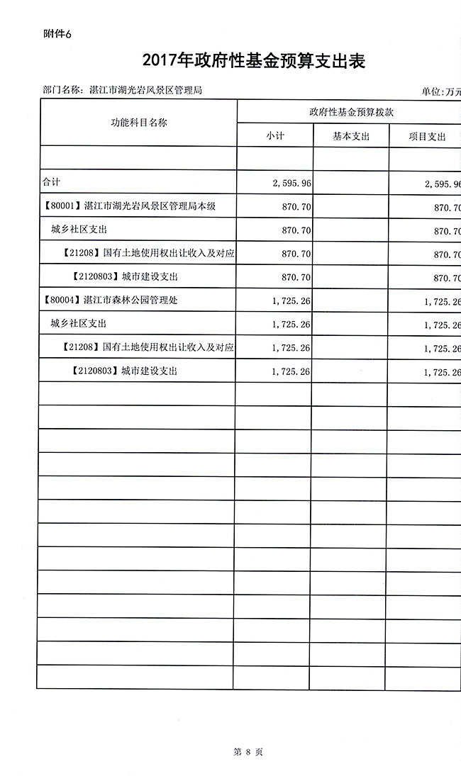 2017年湛江市湖光岩风景区管理局部门预算公开